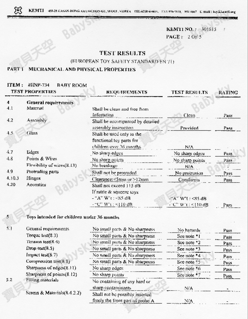 2:燃燒測試。該測試是防止哪天不幸失火了,圍欄不會因失火而燃燒出有毒物質,造成嬰兒肺部的永久性傷害。