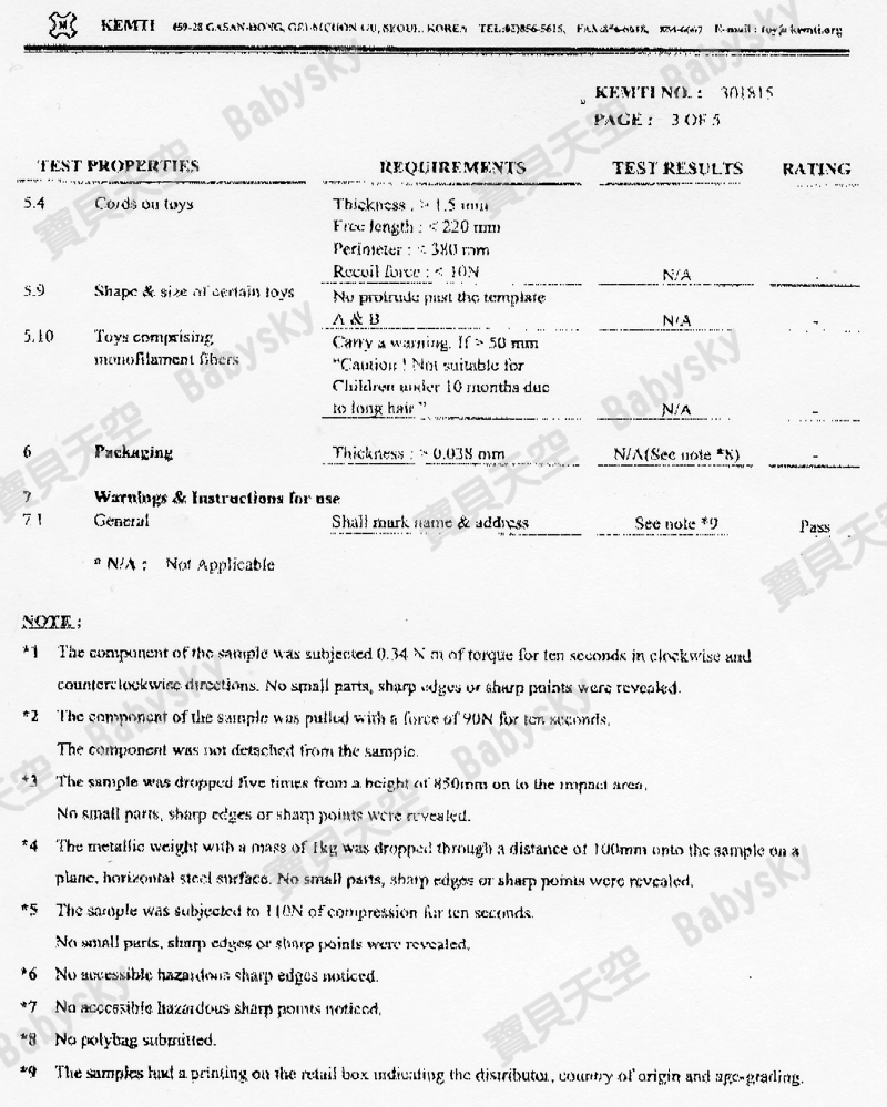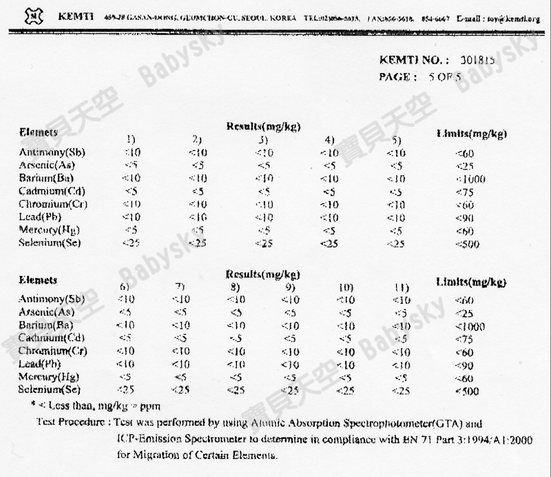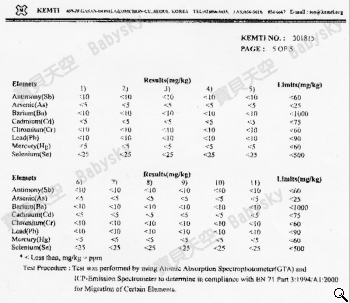 寶貝天空在此,要詳細的向各買家出示下面進口廠商提供的測試報告。讓大家明瞭,買家們雖付出稍高的金額,但確實也是獲得了一個更有保障,更安心的安全產品。